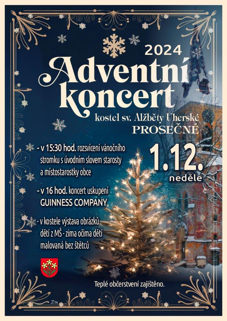 Pozvánka na Adventní koncert v kostele sv. Alžběty Uherské v Prosečné, který se koná dne 1.12. 2024.