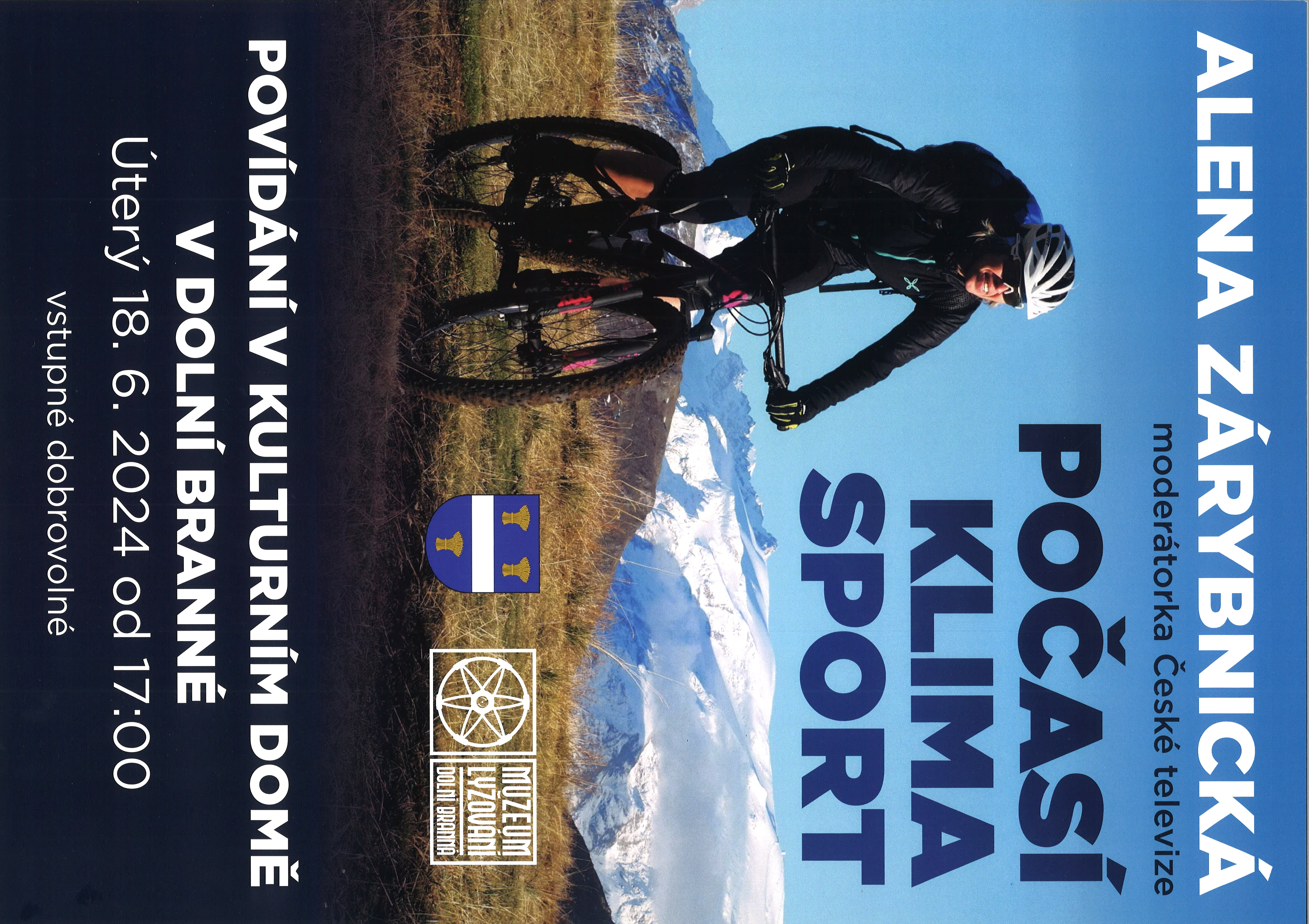 Pozvánka na Besedu s Alenou Zárybnickou, moderátorkou České televize, která se bude konat v úterý 18. června 2024 v 17:00 hodin v Kulturním domě v Dolní Branné.