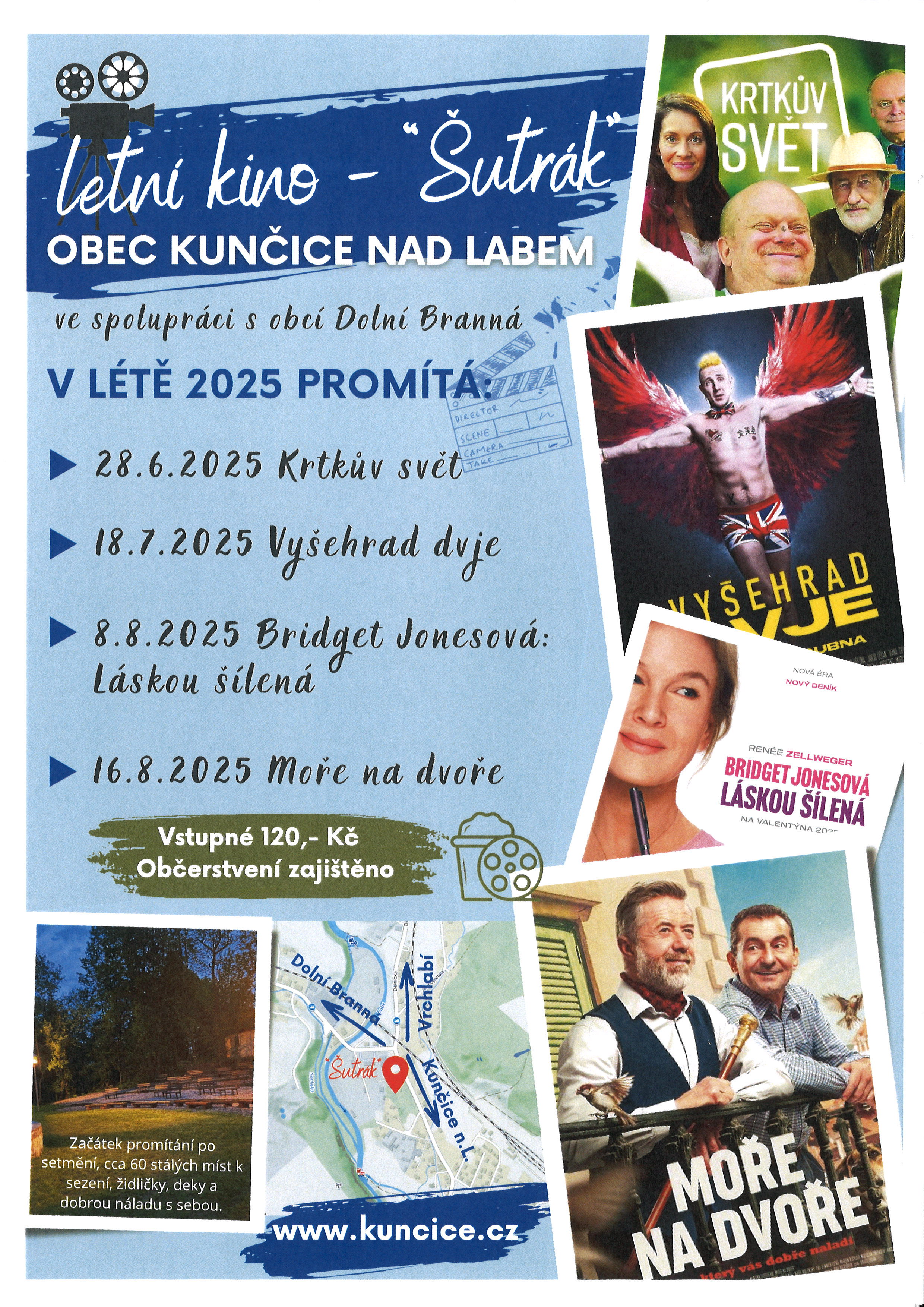 Pozvánka do letního kina - Šutrák - Kunčice nad Labem.