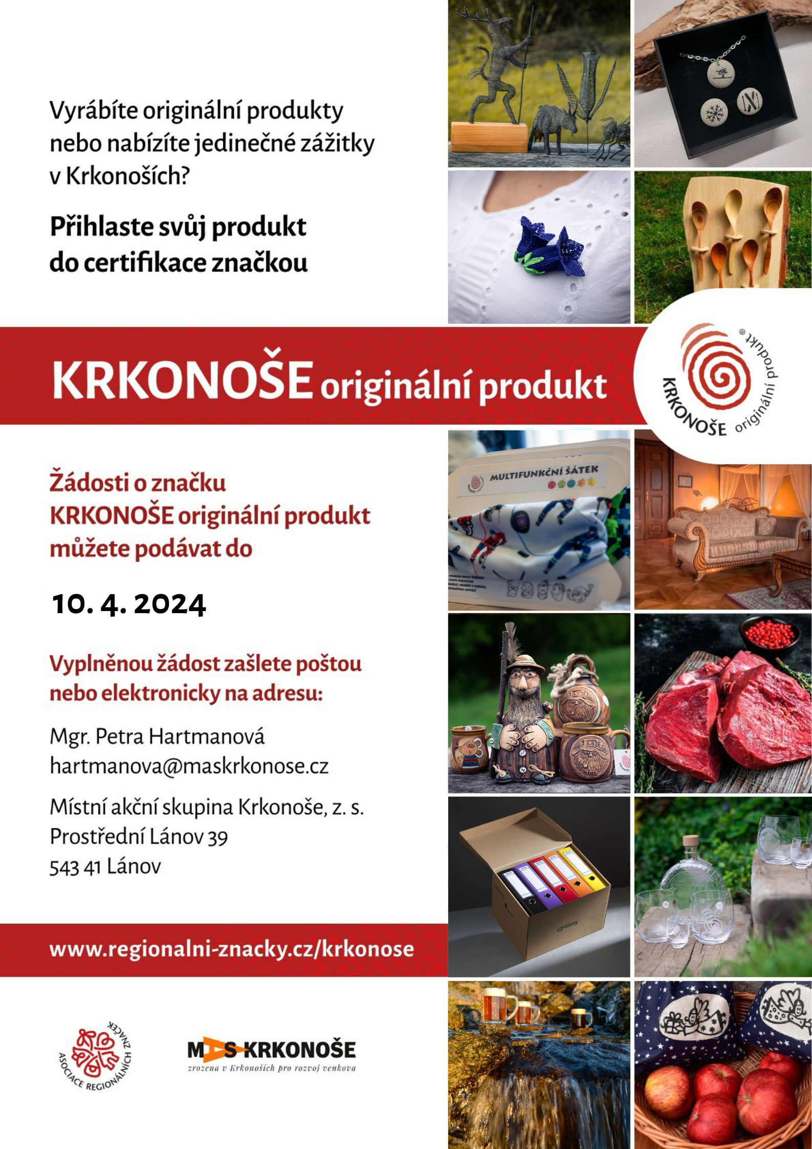Jste z Krkonoš a zabýváte se výrobou výjimečných produktů? Vyrábíte tradičními technologickými postupy a dbáte na šetrnost k životnímu prostředí? Dáváte do své ruční výroby srdce a Vaše duše je na jedné vlně s tradicemi, lidovou kulturou a krkonošskou tématikou?