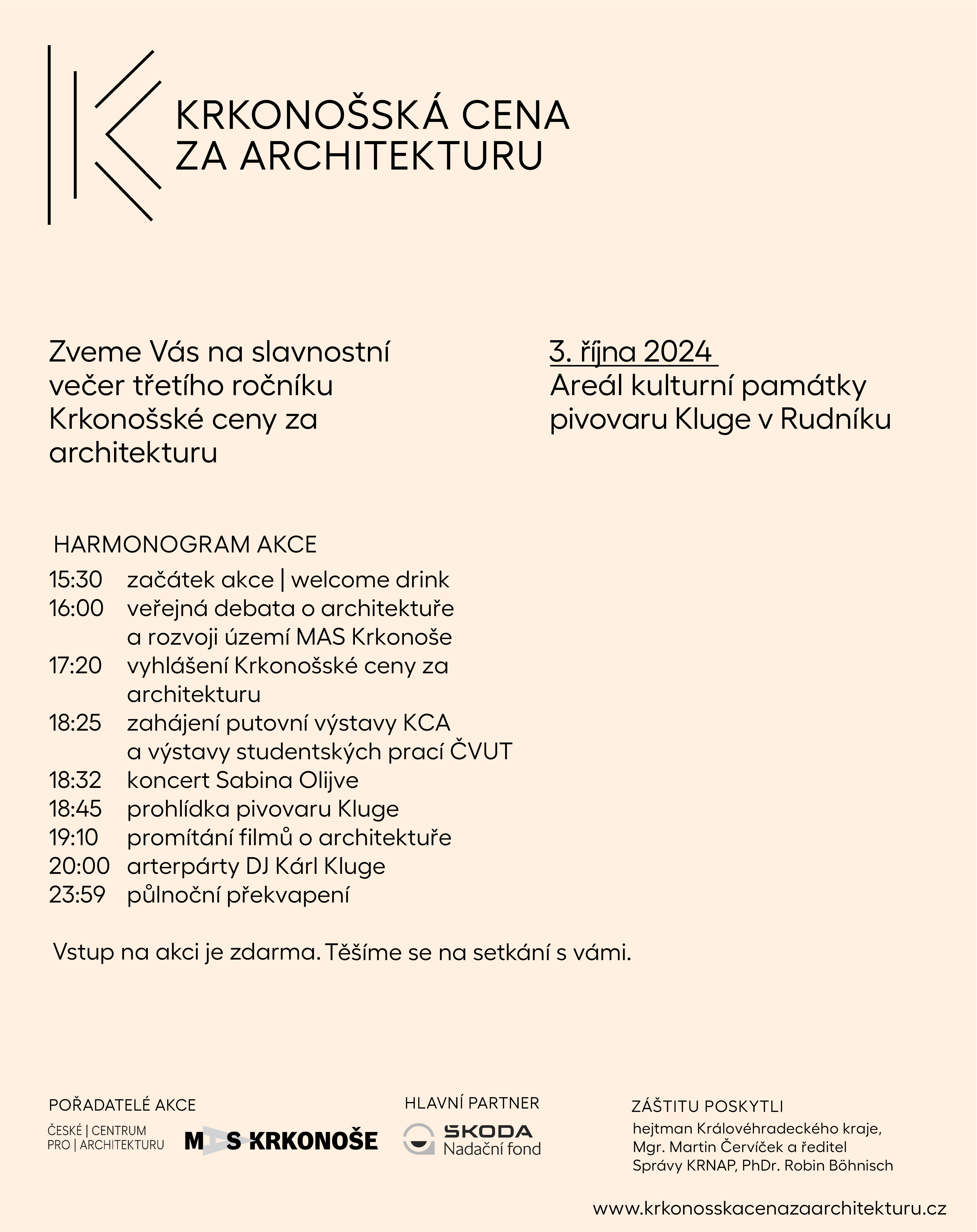 Pozvánka na finálový večer 3. ročníku Krkonošské ceny za architekturu - 3.října 2024